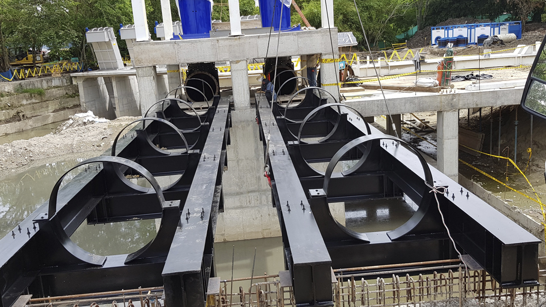 Dentro de este tipo de facilidades en construcción se han desarrollado procesos de fabricación y montaje de estructura metálica para estaciones bombeo, pasos elevados de tubería, montaje de puente grúas de diferentes capacidades y fabricación y montaje de compuestas deslizantes tipo guillotina